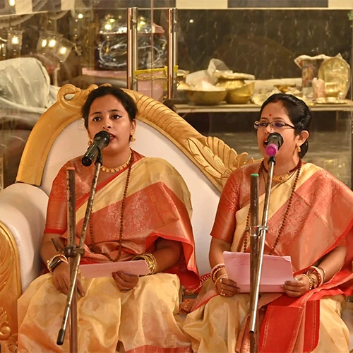Sumangalam is a unique collective of lady-priests, offering services for various occasions such as Weddings, Marriage Anniversaries, Seniors’ Birthdays, Annaprasana (First-rice) ceremonies, House-warmings, and Rituals for the Departed Souls. Ceremonies are distinctively conducted with a blend of traditional Vedic mantras and live renditions of Rabindrasangeet and Brahmasangeet , performed by eminent artistes. Sumangalam takes a progressive approach to traditional wedding rituals and takes pride in abstaining from the traditional 'Kanyadaan' during wedding rituals with the belief that a daughter should never be seen as a commodity to be given away. Instead, the focus remains on creating a deeply meaningful and inclusive ceremony where all participants can feel spiritually connected. To ensure that everyone understands and appreciates the rituals, Vedic mantras are translated into Bengali, English, and Hindi, tailored to the preferences of the patrons.